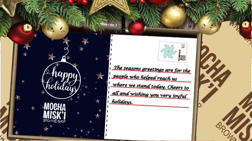 Why send the same old Holiday Cards when you can send one that's beautiful and delicious!. Celebrate your customers' loyalty with this delicious brownie postcard with your own special message. These Brownies Postcards are 100% edible and customizable. Send us your logo to info@mochamiski.com