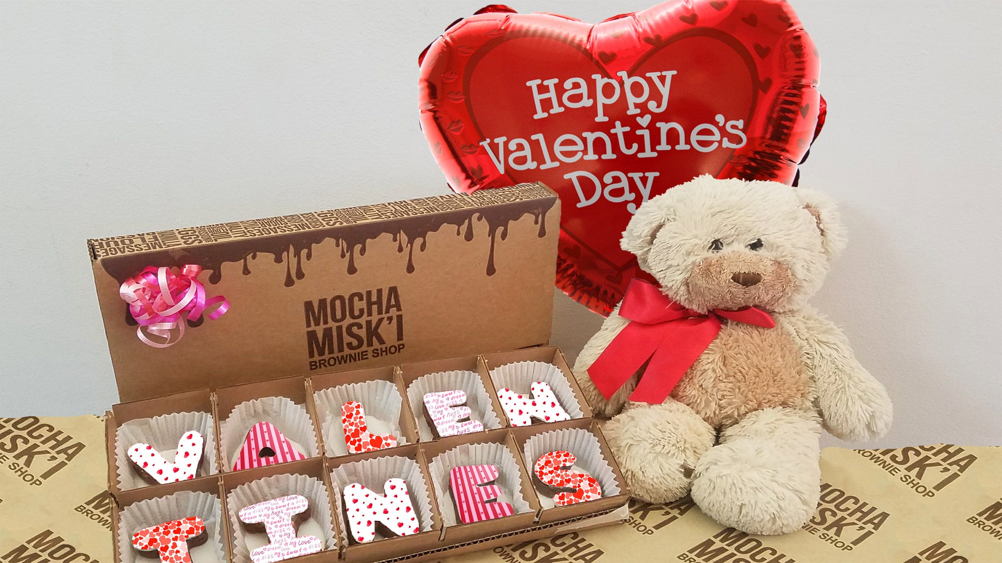 Show your love for someone with this cute Happy Valentines brownie message. It features a lovely decoration, perfect for Valentine's Day. You can also customize it with your favorite toppings.