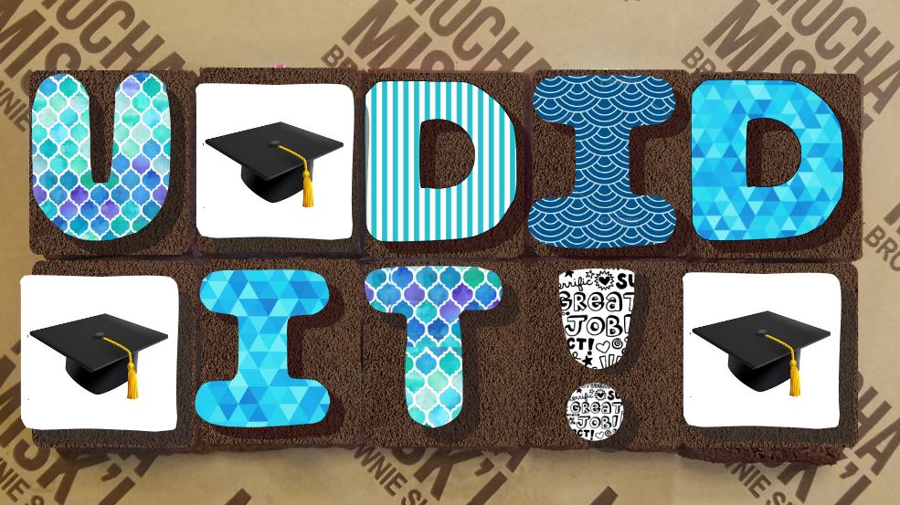 Celebrate your favorite grad with this delicious brownie message. With a graduating spirit and delicious flavors, this graduation gift will be their favorite.